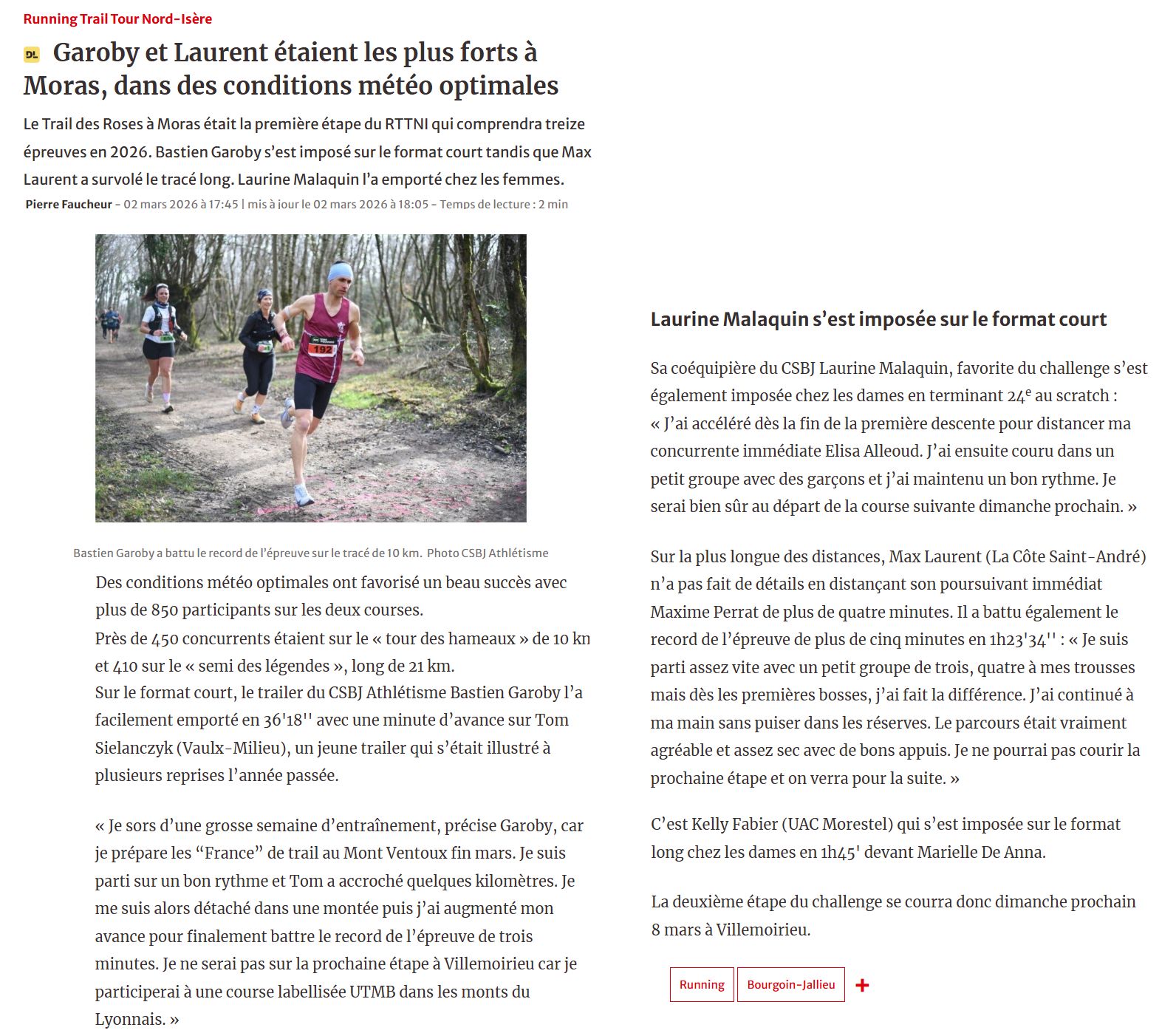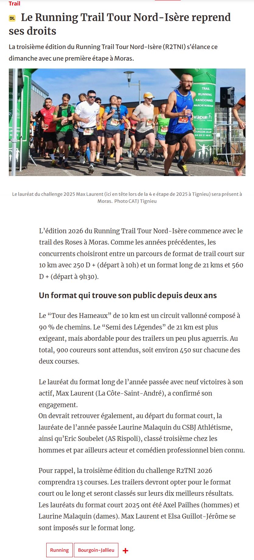 6ème trail des Roses à Moras (38)Par admin1919 / 1 mars 2026 Vatin Bertholet Doncque résultats du Semi résultats du 10 kms